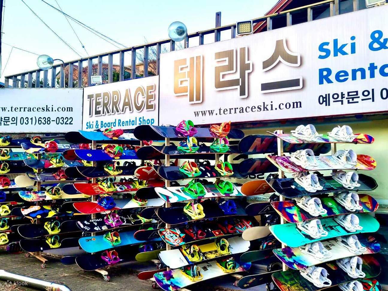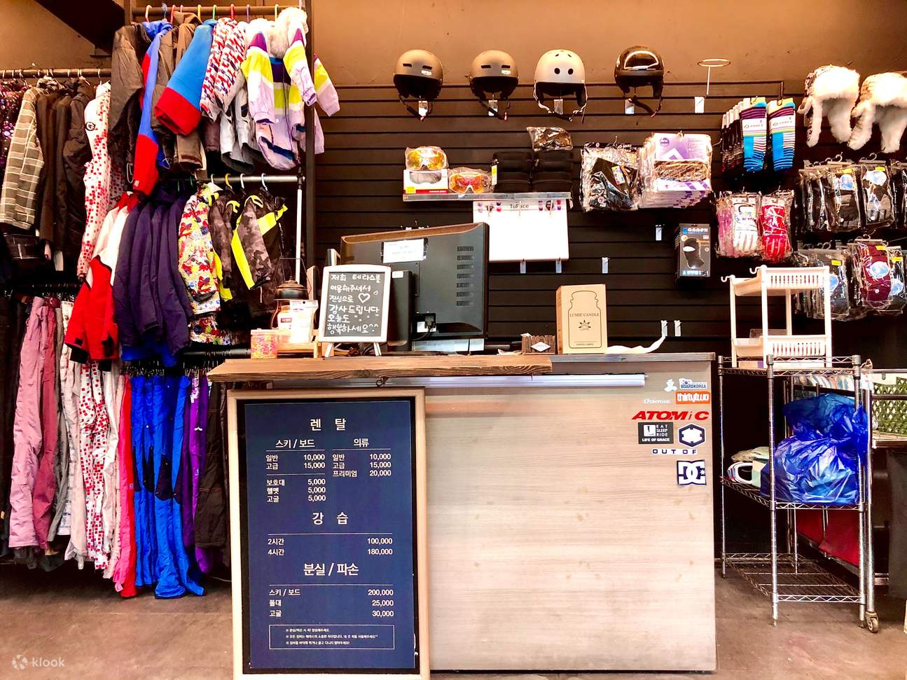 스키복 대여가 1만원부터 가장 비싼 것이 2만원 사이즈별로 걸려 있는 곳에서 마음에 드는 스키복을 선택한 후 탈의실에서 이것저것 입어보면 좋아요.